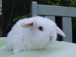 From a litter of 5 I have available a blue eyed white mini lop baby rabbit - buck (boy).