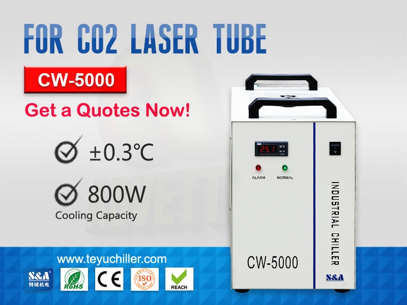 Portable water chiller CW-5000 is widely applied in cooling different kinds of CO2 laser machines, including CO2 laser cutting machines, CO2 laser engraving machine and so on. It is produced by Guangzhou Teyu Electromechanical Co., Ltd (also known as S&A), a professional China-based chiller unit manufacturer with 16-year experience.