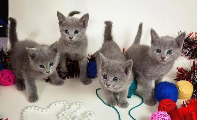 Russian blue kittens. Beauties of sable and lilac colors